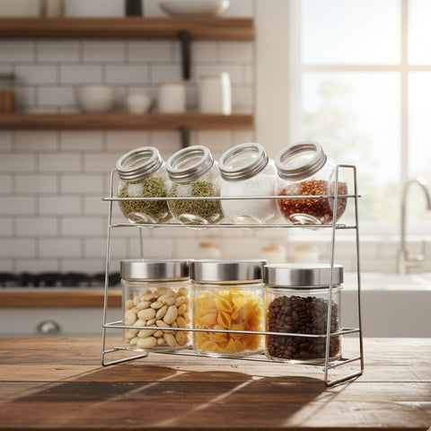 Set Of 7 Airtight Glass Storage Jars With Stainless Steel Lids
