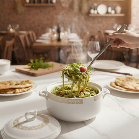 3-Piece White and Gold Ceramic Chafing Dish Set