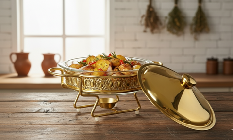 Glass And Steel Gold Chafing Dish