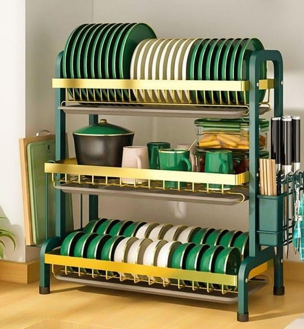 Three Layer Dish Rack Green Gold