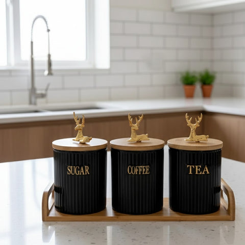 3Pcs Ceramic Canisters Set With Bamboo Stand