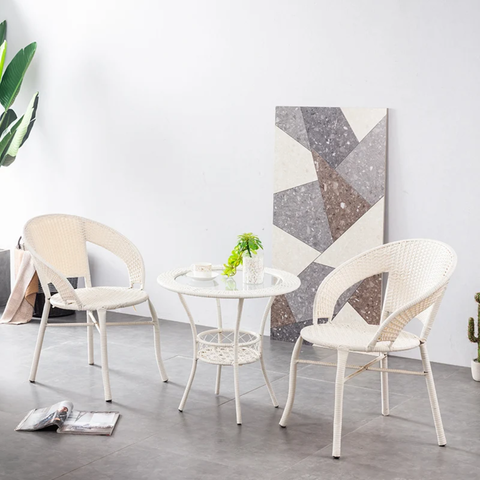 Unique White Cane 2-Chair & 1-Table Set