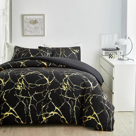 3Pc Marble Print Microfiber Quilt Cover with Zip